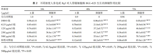不同浓度人参皂苷Rg3对人胃癌细胞株BGC-823生长的抑制作用比较