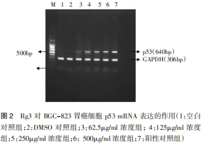 研究发现,不同浓度人参皂苷Rg3作用于胃癌细胞株BGC-823 48h后,随着药物浓度的增加,P53 mRNA表达逐渐上调,而S100A4 mRNA表达出现逐渐下调的趋势,这表明人参皂苷Rg3可能通过下调S100A4,减少S100A4通过蛋白激酶c介导的p53磷酸化途径的抑制,并上调p53,活化p53的激活依赖的细胞周期阻滞途径而诱导BGC-823细胞凋亡作用。